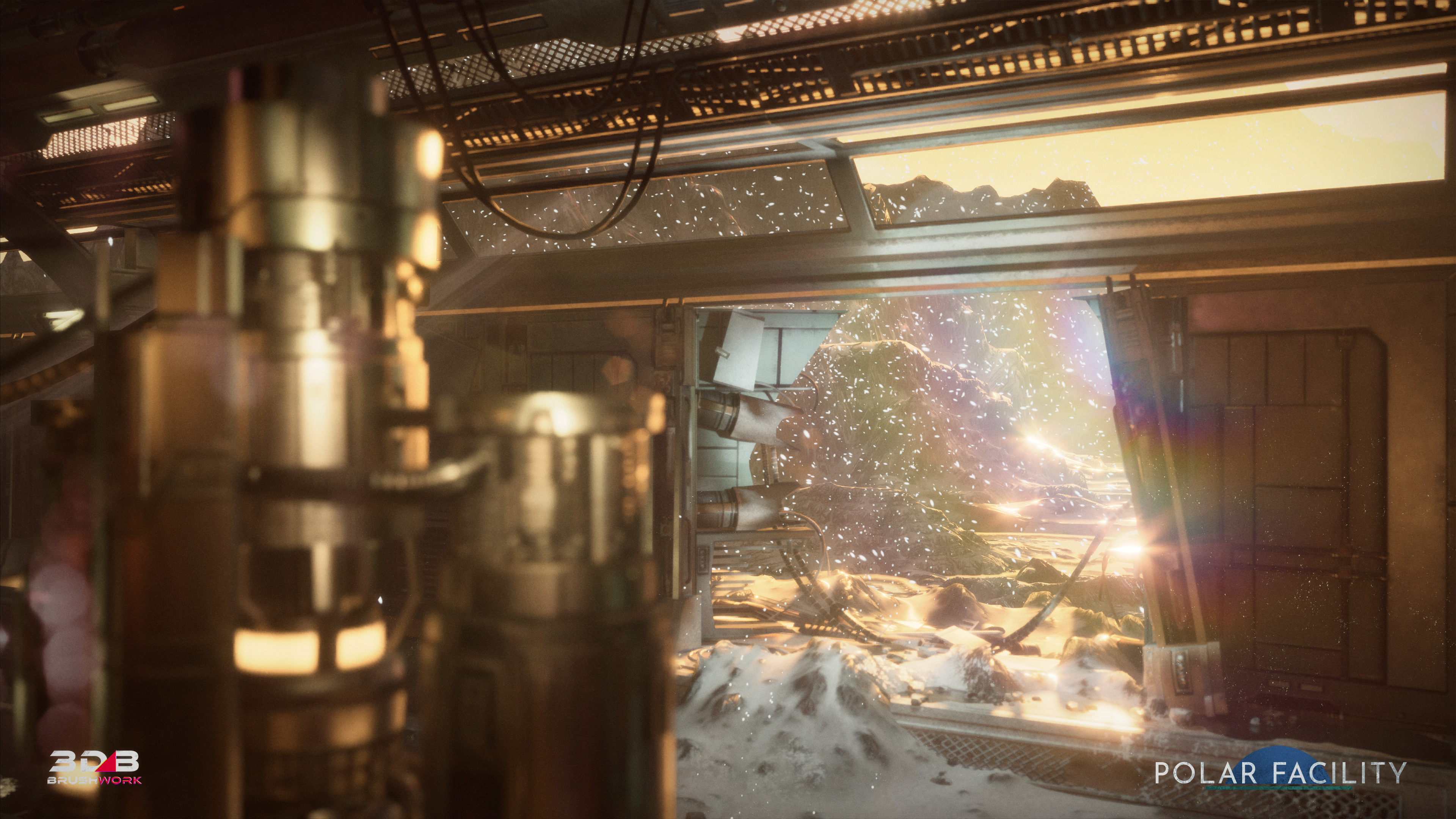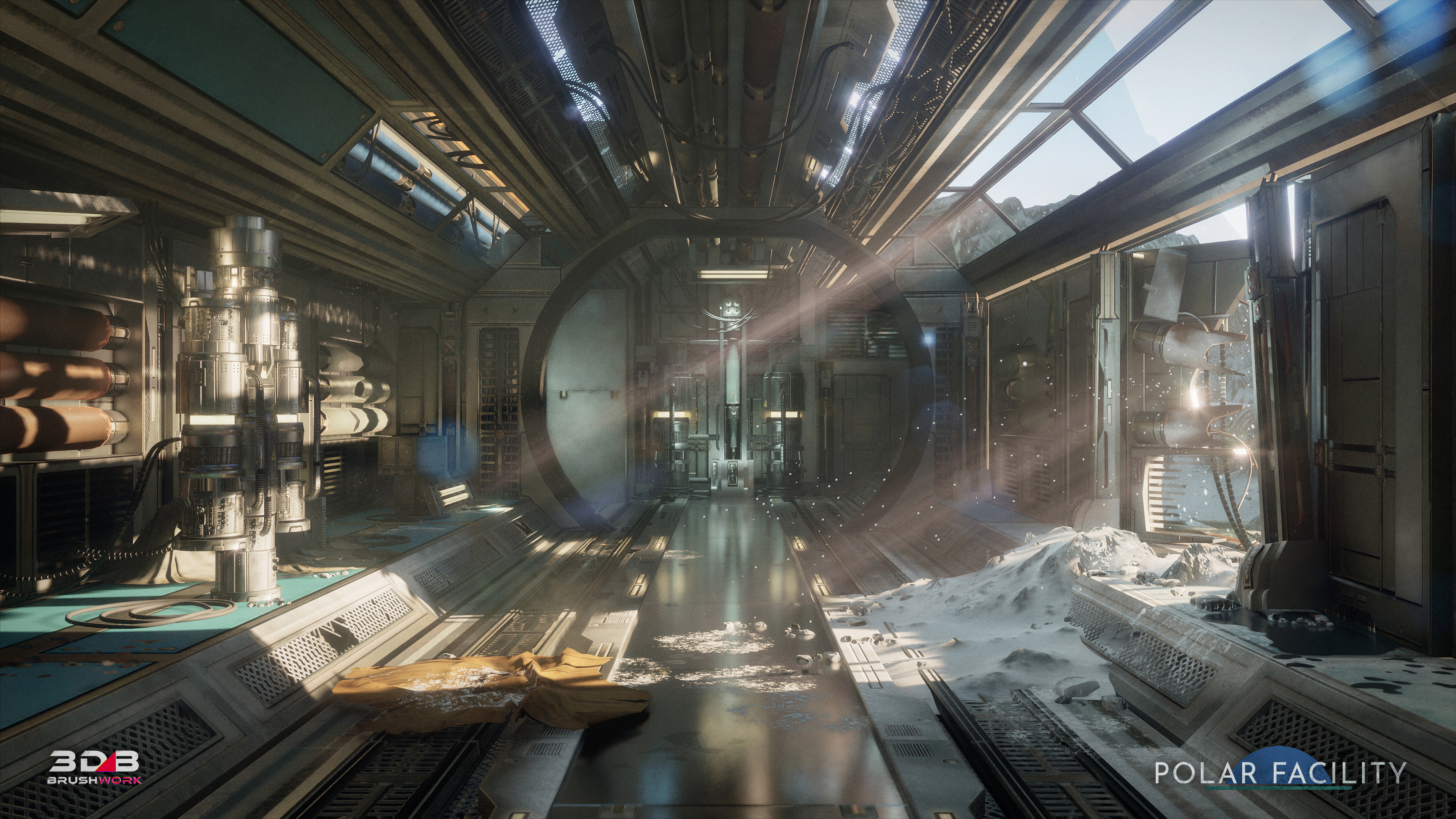 In a remote polar facility surrounded by an icy landscape, something went wrong during one of the darker government programs. Now there's a hole blown out from the inside and whatever got out wasn’t supposed to survive. A broken wall in the icy polar facility reveals the escapee from the dark government experiment.